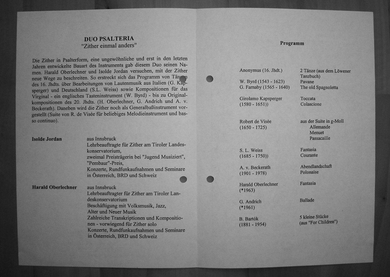 u.a. mit Isolde Jordan und Harald Oberlechner (Zither)